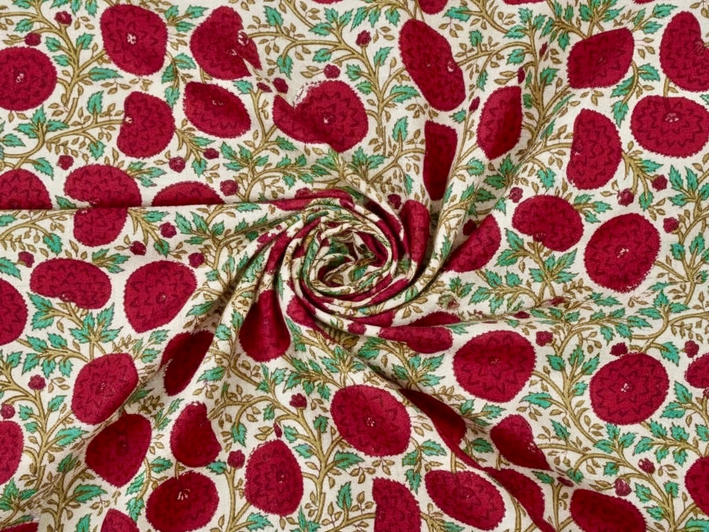 【50cm単位】ブロックプリント生地 インド綿 花柄 レッドフローラルリーフ
