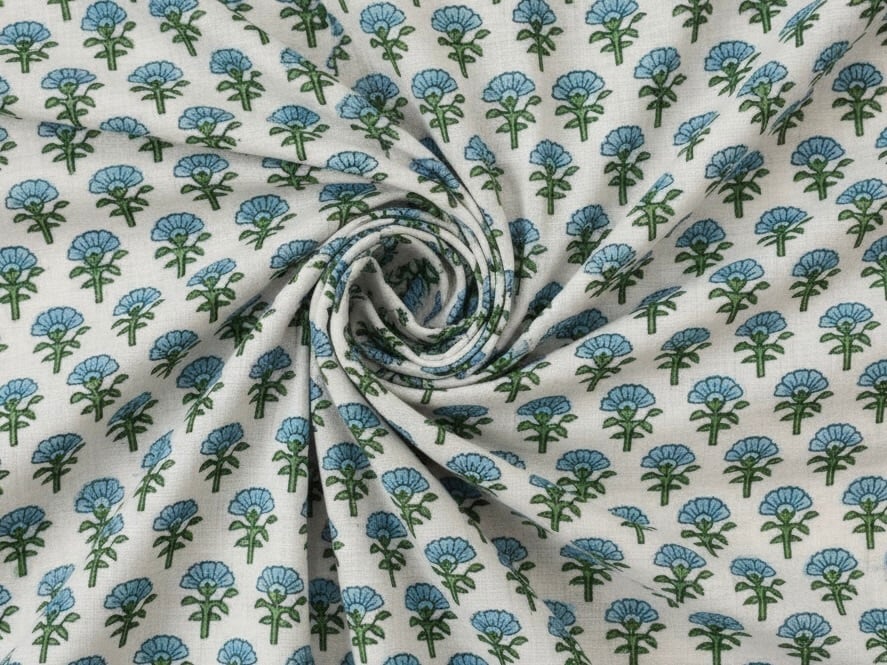 【50cm単位】ブロックプリント生地 インド綿 花柄 ライトブルーフラワー