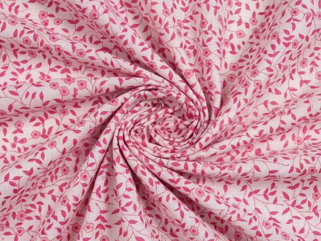 【50cm単位】ブロックプリント生地 インド綿 花柄 ピンクブロッサムリーフ