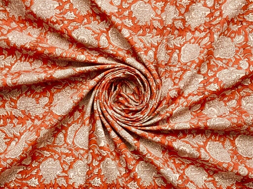 【50cm単位】ブロックプリント生地 インド綿 花柄 オレンジフローラル